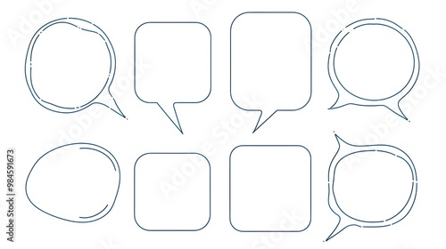 Minimalist Speech Bubble Line Frames for Modern Communication Tools on Clean Background