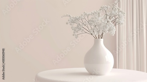 Minimalist Still Life with White Flowers in a Vase on a Table