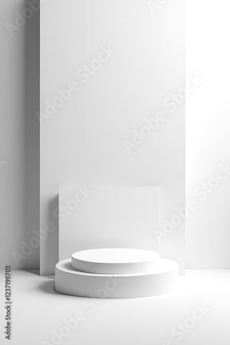 Minimalist Studio Display White Pedestal with Soft Lighting Effect
