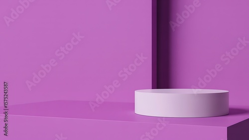 Minimalist studio product display with purple backdrop and cylindrical pedestal image