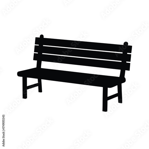 Minimalist stylized black silhouette of a wooden park bench for design projects