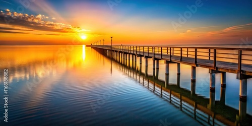 Minimalist sunset: a lone pier silhouetted against the fiery ocean sky.