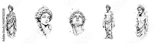 Minimalist Surrealist Greek Ancient Statue Vector Illustration Set