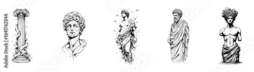 Minimalist Surrealist Greek Ancient Statue Vector Illustration Set