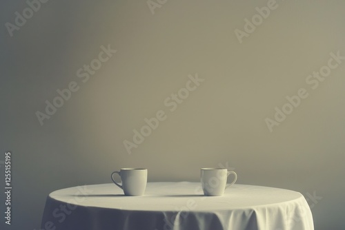 Minimalist Table Setting with Empty Ceramic Mugs Against Muted Wall