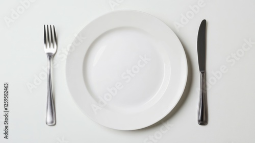 Minimalist table setting with empty plate, fork, and knife