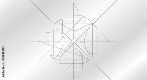 Minimalist Technical Drawing of a Geometric Abstract With Fine Line Art and Symmetrical Elements