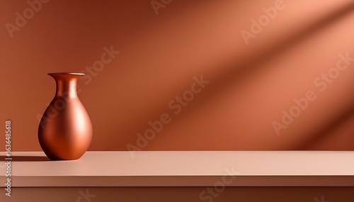minimalist terracotta background monochrome empty table with cooper vase wall scene mockup product for showcase promotion background