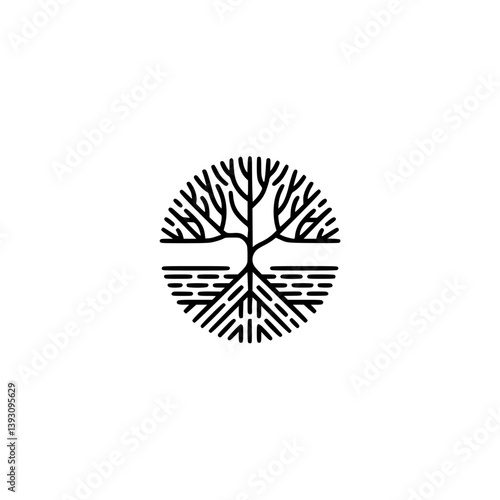 Minimalist Tree Logo: Roots & Branches Circle, Nature Illustration