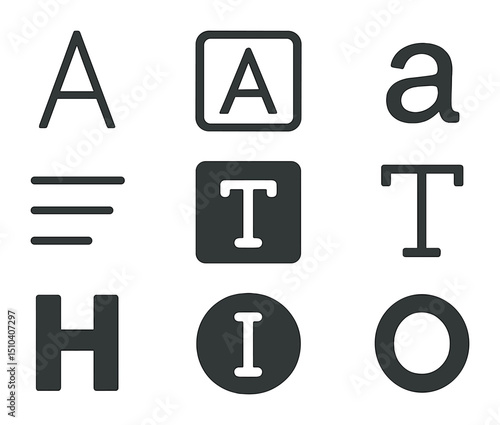 Minimalist Typography Icons. Solid, filled icons set of minimalist typography styles: thin sans-serif, wide