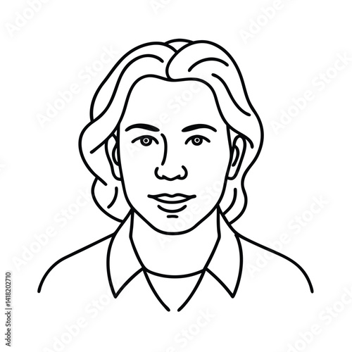 Minimalist Vector Illustration Of A Person With Long Hair And Collar Shirt Line Art Style