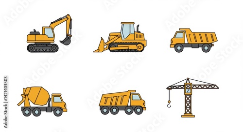 Minimalist Vector Line Art Icons of Construction Vehicles