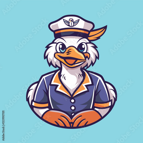 Minimalist Vector Logo Illustration of a Sailor Heron Mascot