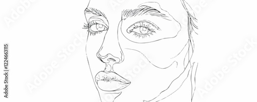 Minimalist vector portrait line art of a woman's face with expressive features.