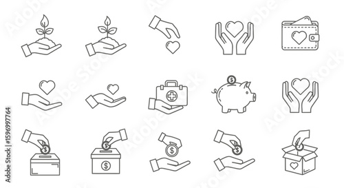 Minimalist Vector SVG Icon Set with Heart Hands Plant and Medical Symbols in Line Art Style