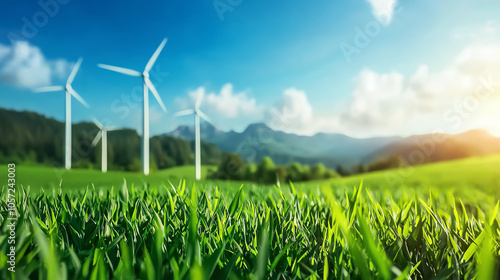Minimalist view of electric turbines in a green valley, simple yet powerful image of eco-friendly sustainability