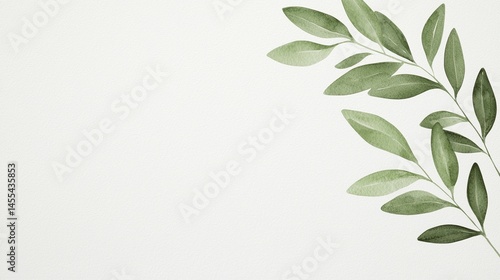 Minimalist watercolor illustration of green leafy branches on a white background.