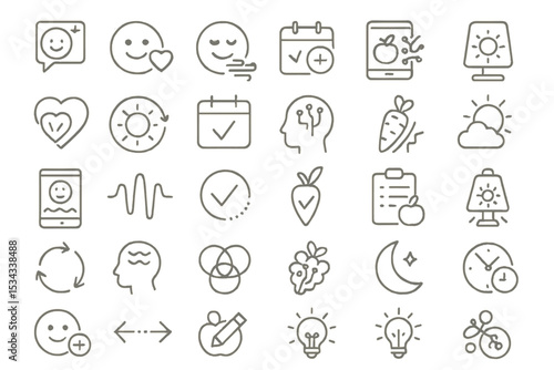 Minimalist wellness and lifestyle icon set in soft neutral tones