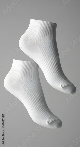 Minimalist white ankle socks floating against a neutral gray background, perfect for fashion and lifestyle concepts