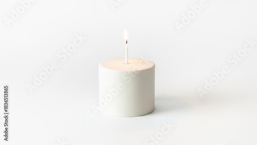 Minimalist White Candle Illuminating a Serene Atmosphere
