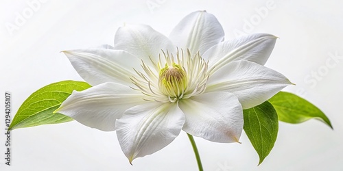 Minimalist White Clematis Flower Isolated on White Background - Stock Photo