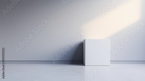 Minimalist White Cube in a Brightly Lit Room with Gradient Wall and Floor