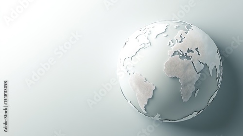 Minimalist White Globe of Earth with Detailed Continents on a Soft Gray Background : Generative AI