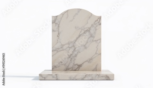 Minimalist white marble gravestone with natural veining and curved top for a classic memorial tribute