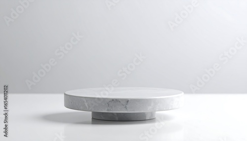 Minimalist White Marble Pedestal for Product Display, Copy Space