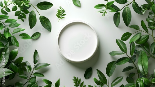 Minimalist White Plate Surrounded by Lush Green Foliage