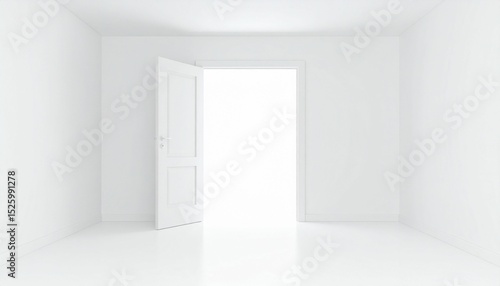 Minimalist white room interior with clean walls and open end, 3D Rendering style, isolated on white background, concept of modern space layout