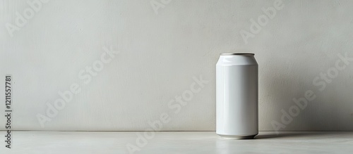 Minimalist white soda can mockup positioned on a light gray flat surface showcases clean aesthetics perfect for branding and design presentations