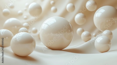 Minimalist White Spheres on Cream Canvas. Generative AI