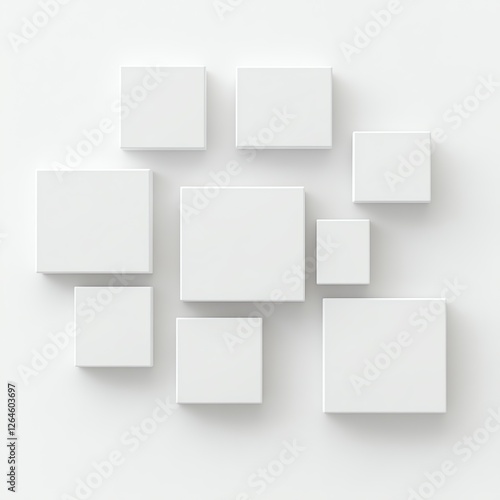 Minimalist white square tiles arranged on a wall creating modern geometric pattern for design inspiration.