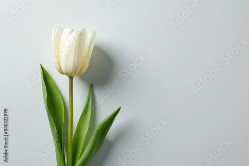 Minimalist white tulip against a light grey canvas, tulips, soft