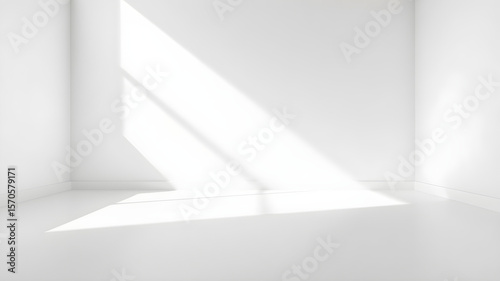 Minimalist White Wall Interior with Sunlight and Window Shadow Empty Room Background. Generative AI.