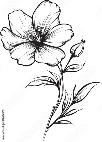 Minimalist wildflower tattoo element vector icon in black lines Beautiful line art wildflower tattoo design with graceful shapes