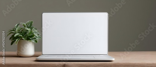 Minimalist workspace featuring a laptop and potted plant