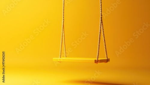Minimalist Yellow Swing with Whimsical Floating Ropes, Simple, Modern, and Playful Design, Perfect for Home Decor, Photography Backdrop, or Child's Room, Add a Touch of Fun to Your Space