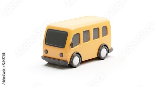 Minimalist Yellow Toy School Bus Model On White Background