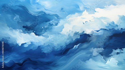 Minimalistic Art of White and Blue Paint Brush Stroke Curvy Background