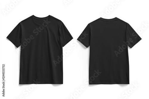 Minimalistic black t-shirt mockup showing front and back views on a white background for design purposes
