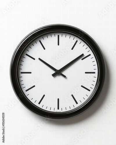 Minimalistic Black Wall Clock with Simple Dial and White Background