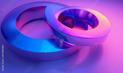 Minimalistic Blue and Purple 3D Abstract Background with Rings and Curves