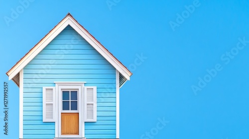 Minimalistic blue house icon against solid background representing homeownership real estate simplicity and architectural design in modern digital style for property business concepts