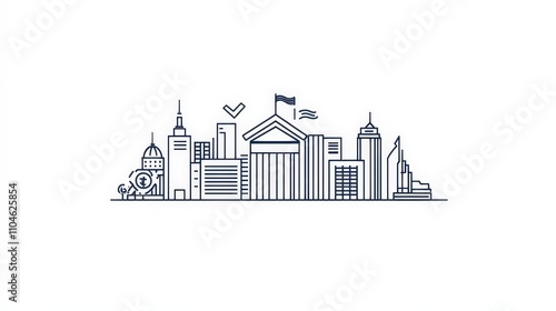 Minimalistic City Skyline Illustration with Iconic Landmarks