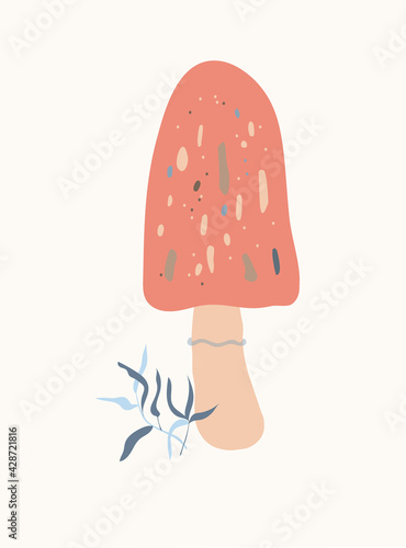 Minimalistic drawing of a forest mushroom, isolated, brown color design on white background. Symbol, icon, vector illustration, botanical elements, style of minimalist, hand drawn.