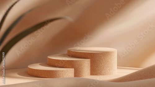 Minimalistic geometry featuring textured steps in warm tones, ideal for showcasing products or creative designs.