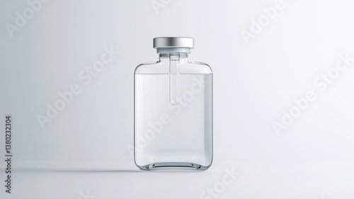 Minimalistic glass bottle with metal cap, showcasing simplicity and elegance against a clean background.