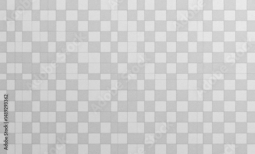 Minimalistic gray and white checkerboard pattern on a textured background.